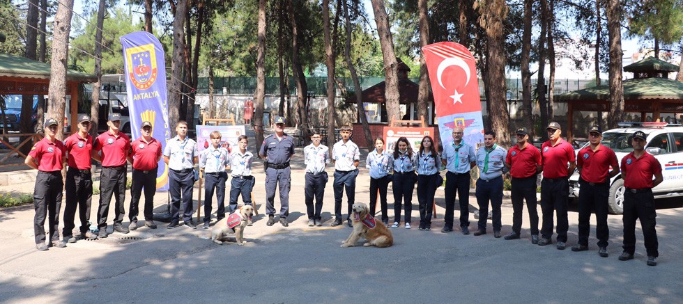 İzcileri ve izci liderlerini Antalya İl Jandarma Komutanlığı’nın arama kurtarma ekipleri karşıladı. Her türlü doğa ve insan kaynaklı afette görev alan JAK Timi, Büyükşehir izcilerine kısa bir eğitim verdi. İzcilere kısa bir ipli geçiş eğitimi verilmesinin ardından arama kurtarma köpekleri de gösteri yaptı. Jandarma köpeği başarısı ve sevimliliği ile izcilerin ilgi odağı oldu.
