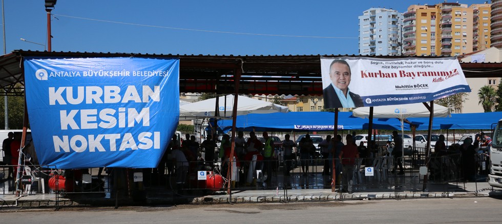 Antalya Büyükşehir Belediyesi Hayvan Sağlığı Şube Müdürlüğü kurban kesim işleminin hijyenik ortamlarda yapılabilmesi için bu yıl da 3 yerde kurban kesim hizmeti verecek. Vatandaşlar Muratpaşa İlçesi Soğuksu Mahallesi Perşembe Pazarı ve Yeşilbahçe Mahallesi Kapalı Çarşamba Pazarı ile Döşemealtı Kömürcüler Mahallesi’nde bulunan hayvan pazarında bayramın 1’nci ve 2’inci günlerinde veteriner hekim kontrolünde ücretsiz kurban kesim hizmetinden yararlanabilecek.