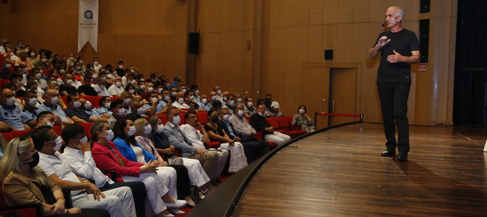 Antalya Büyükşehir Belediyesi personelinin motivasyonu, verimliliği ve hizmet kalitesinin artırılması amacıyla düzenlenen eğitimde Dr. Ahmet Çiçek “Motivasyon ve Eğitim Teknikleri” konusunda eğitim verdi. Atatürk Kültür Merkezi (AKM) Aspendos Salonunda düzenlenen eğitime Antalya Büyükşehir Belediyesi Genel Sekreteri Cansel Çevikol Tuncer, Daire Başkanları, Şube Müdürleri ve çeşitli birimlerde görev yapan personeller katıldı.