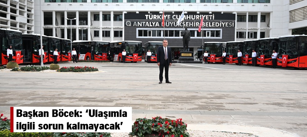 Antalya Büyükşehir Belediyesi’nin kent içi toplu ulaşım için satın aldığı çağdaş ve çevre dostu 8,5 metrelik, 20 yeni otobüs; törenle toplu ulaşım hatlarında çalışmaya başladı. Başkan Muhittin Böcek, “Antalya’da ulaşımla ilgili sorun kalmayacak. Bunun için çalışıyoruz. Özellikle büyük otobüslerin giremediği yokuş ve dar sokakların bulunduğu mahalleler için alınan otobüslerimiz Antalya’mıza hayırlı olsun” diye konuştu.