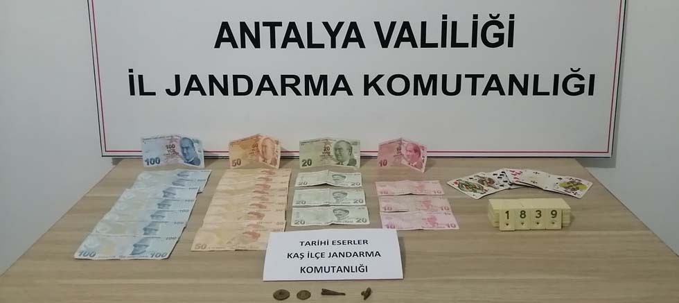 "Kaş Cumhuriyet Başsavcılığı koordinesinde; Kaş İlçe Jandarma Komutanlığı Mrk J.Krk.K.lığı ve 15. JASAT Tim K.lığı ekipleri tarafından çoban olduğu tespit edilen İ.Ç isimli şahın Karadağ mahallesi İçme mevkiinde bulunan çadırında kumar oynattığı bilgisinin alınması üzerine; adli makamlardan alınan arama kararına istinaden bahse konu çadırda yapılan aramada,
