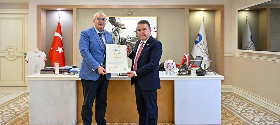 Antalya Büyükşehir Belediye Başkanı ve Cittaslow Türkiye Koordinatörü Muhittin Böcek, “Sakin Şehir" (Cittaslow) ünvanını almaya hak kazanan Denizli Çameli İlçesi’nin Belediye Başkanı Cengiz Arslan’ı kabul etti. Çameli Belediye Başkanı Cengiz Arslan, Başkan Böcek’e Çameli’nin Sakin Şehir olması yönünde desteklerinden dolayı Başkan Muhittin Böcek’e teşekkür etti.
