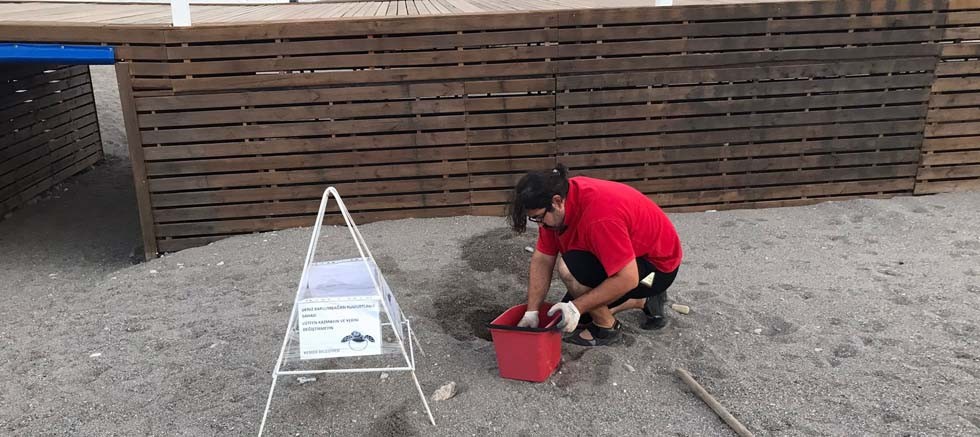 Uzun, yaptığı açıklamada, caretta carettanın sahil bandında yakın bir yere yumurta bıraktığı ihbarı alınca hızla olay yerine geldiğini söyledi.