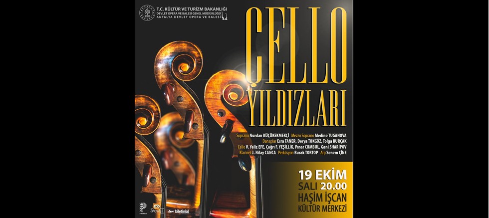 Antalya Devlet Opera ve Balesi 19 Ekim Salı akşamı saat: 20.00’de uzun süre hafızalardan silinmeyecek özel bir konserle sanatseverlerin karşısına çıkacak. Dünyaca ünlü bestecilerin eserlerinin seslendirileceği “Çello Yıldızları” konserinde soprano Nurdan Küçükekmekçi, mezzo soprano Medine Tuganova, çello sanatçıları Veronika Yeliz Efe, Çağrı Fırat Yeşillik, Pınar Cumbul ve Gani Sharipov, klarinet sanatçısı Nilay Canca, perküsyon sanatçısı Burak Tortop ve arp sanatçısı Senem Çine sahne alırken, sanatçılara Esra Taner, Derya Tokgöz ve Tolga Burçak muhteşem dansları ile eşlik edecekler.