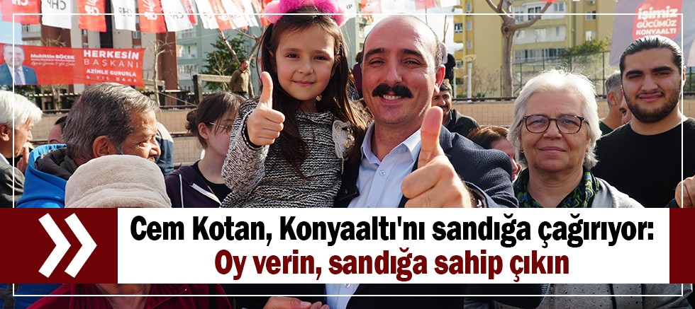 Cumhuriyet Halk Partisi (CHP) Konyaaltı Belediye Başkan Adayı Cem Kotan, pazar günü yapılacak seçimler için herkesin vatandaşlık sorumluluğuyla oy kullanmasını istedi.