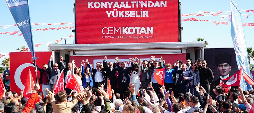Cumhuriyet Halk Partisi (CHP) Konyaaltı Belediye Başkan Adayı Cem Kotan, Kanal V’de gazeteci Ali Buldu’nun sorularını yanıtlarken Türkiye ittifakını Konyaaltı’nda gerçekleştirdiklerini belirterek, Kent Meydanı’nda Pazar günü düzenledikleri mitinge diğer partilerden geniş katılım olduğunu söyledi.