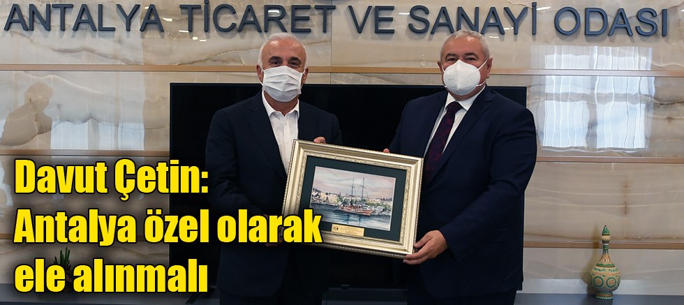 Antalya’nın pandemi döneminden en çok etkilenen il olduğunu belirten Başkan Davut Çetin, “Antalya ekonomisinin lokomotif sektörü olan turizm bu dönemde en çok yara alan sektör oldu. Bu anlamda Antalya’ya verilmesi gereken destekler özel olarak ele alınmalı. Antalya’da faaliyet gösteren her sektörün turizm ile doğrudan bağlantısı bulunuyor. Yaşanan bu durum Antalya ekonomisi için bir afet niteliğinde” şeklinde konuştu.