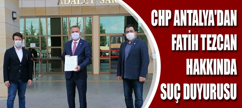 Cumhuriyet Halk Partisi Antalya İl Başkanı Nusret Bayar, Fatih Tezcan isimli şahsa, Atatürk ve Cumhuriyet düşmanlığı içeren paylaşımları ve ifadeleri dolayısıyla suç duyurusunda bulunduklarını açıkladı. Başkan Bayar, “Biz inanıyoruz ki Türkiye Cumhuriyeti’nin savcıları da hakimleri de var, gereğini yapacaklardır” dedi