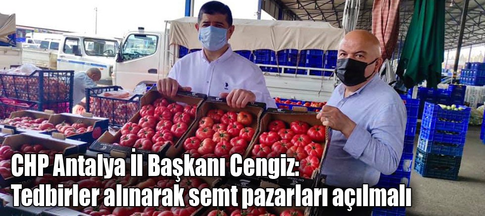 Antalya sebze meyve halinde üretici ve tüccarları ziyaret eden CHP Antalya İl Başkanı Nuri Cengiz, tam kapanma sürecinin henüz başında olunmasına rağmen yaşanan çok fazla sorun olduğuna değindi. Başkan Cengiz, “Tedbirler alınarak semt pazarları açılmalı” dedi.