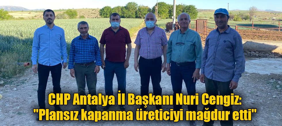Tam kapanma sürecinde mağduriyet yaşayan süt üreticilerini, üretim alanlarında ziyaret ederek sorunlarına kulak veren Cumhuriyet Halk Partisi Antalya İl Başkanı Nuri Cengiz, “Adeta el yordamıyla yürütülen kapanma süreci ve AKP’nin üretimi desteklemeyen sığ anlayışı, üretimi neredeyse durma noktasına getirdi” dedi.