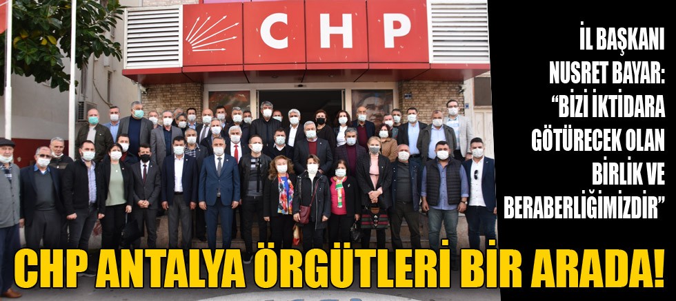 CHP Antalya İl Başkanı Nusret Bayar, görevde bir yılı geride bırakması dolayısıyla gerçekleştirdiği değerlendirme toplantılarına ilçe başkanlarıyla devam etti. Gazipaşa’dan Kaş’a 19 ilçe başkanının bir araya geldiği toplantı sonrası Bayar, “Bizi iktidara götürecek olan birlik ve beraberliğimizdir” dedi.