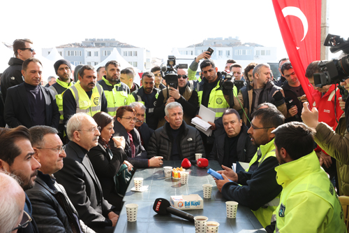 Hatay’ın Defne ilçesinin depremde en çok zarar gören bölgelerden olduğunu belirten CHP Genel Başkanı Kemal Kılıçdaroğlu, “Hem yaraları sarmamız hem de geleceğe umutla bakan bir Türkiye inşa etmemiz gerekiyor. Elbette vatandaşlarımızın çok sorunu var. Biliyoruz 17 gün geçmesine karşın bazı ihtiyaçlar henüz giderilememiş. Sadece CHP’li belediye başkanlarımız değil bütün belediye başkanlarımız olağan üstü çaba harcıyorlar. Bütün belediye başkanı arkadaşlarıma yürekten teşekkür ederim” dedi.