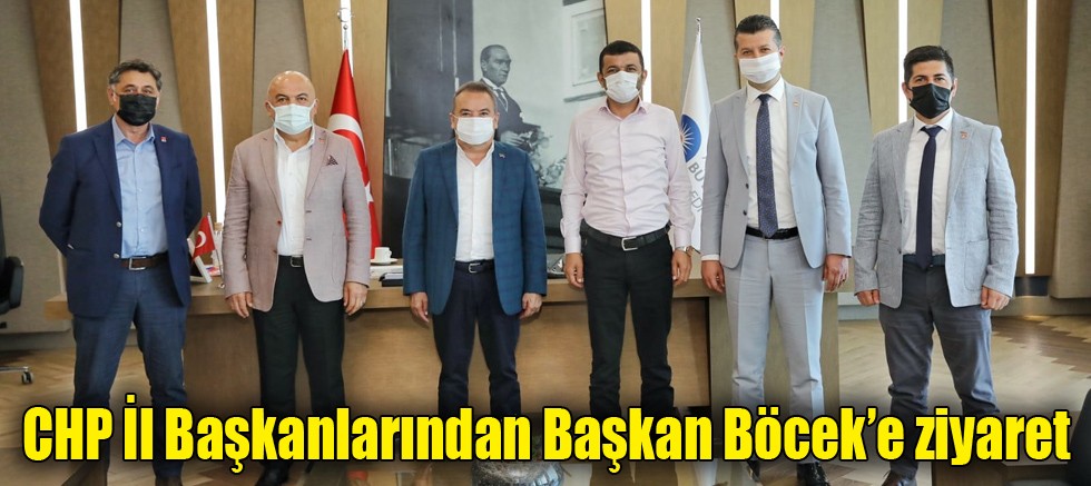 Antalya Cumhuriyet Halk Partisi İl Başkanı Nuri Cengiz, Isparta Cumhuriyet Halk Partisi İl Başkanı Yalım Hacılı, Denizli Cumhuriyet Halk Partisi İl Başkanı Bülent Nuri Çavuşoğlu, Burdur Cumhuriyet Halk Partisi İl Başkanı İzzet Akbulut ve Afyon Cumhuriyet Halk Partisi İl Başkanı Yalçın Görgöz Antalya Büyükşehir Belediye Başkanı Muhittin Böcek’i makamında ziyaret ederek, geçmiş olsun dileklerini iletti. Ziyaretten duyduğu memnuniyeti dile getiren Başkan Böcek, konuk il başkanlarına belediye hizmetleri ve projeleri hakkında bilgi verdi. Başkan Muhittin Böcek, konuk CHP’li İl Başkanları ile kent ve ülke gündemiyle ilgili değerlendirmelerde bulundu.