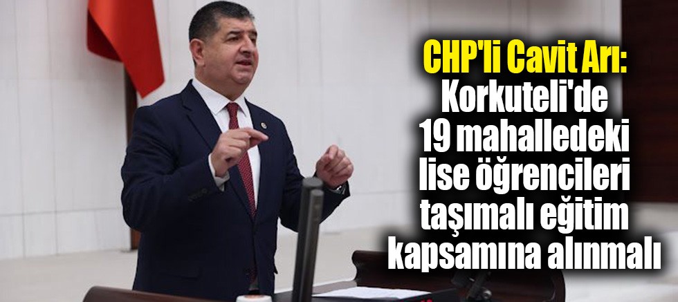 Plan ve Bütçe Komisyonu üyesi CHP Antalya Milletvekili Av. Cavit ARI; yeni eğitim ve öğretim döneminin başlamasıyla Antalya Korkuteli’nde 19 mahallede bulunan lise öğrencilerinin taşımalı eğitim kapsamından çıkarılmasını Milli Eğitim Bakanı Yusuf Tekin’e vermiş olduğu soru önergesiyle TBMM gündemine taşıyarak basın açıklaması yaptı.