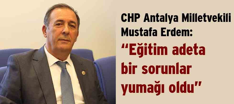 TBMM Plan ve Bütçe Komisyonu’nda 2024 Yılı Merkezi Yönetim Bütçe Kanun Teklifi görüşülmeye devam ederken, Milli Eğitim Bakanlığı’nın bütçe görüşmeleri üzerine konuşan CHP Antalya Milletvekili Plan ve Bütçe Komisyonu Üyesi Mustafa Erdem, Eğitimin bir sorunlar yumağı olduğunu dile getirdi ve “Yeni Bakanımızın gelmesiyle birlikte olumlu anlamda değişen bir şey olmadı. AKP iktidarı süresince tam 17 kez eğitim sistemi, 9 kez de Millî Eğitim Bakanı değişti. Her gelen Bakan farklı bir düzen kuruyor. Yeni gelen Bakan da okullarda yapılan sınavlarda yeni bir şey icat etti; senaryolar. Öğrenciler sınavları birinci senaryo mu, ikinci senaryo mu, üçüncü senaryo mu; ona göre yapacaklar. Öğretmen, öğrenci, herkesin kafası maalesef karışık. Ben de bu bütçe değerlendirmesini hangi senaryoya göre yapsam diye düşündüm yine de halkın, öğretmenin, öğrencinin yaşadığı, anladığı senaryoya göre konuşmak istedim.” diyerek Milli Eğitim Bakanı Yusuf Tekin’in göreve başlamasından kısa süre sonra okullarda başlatılan” senaryo” yöntemini eleştirdi.