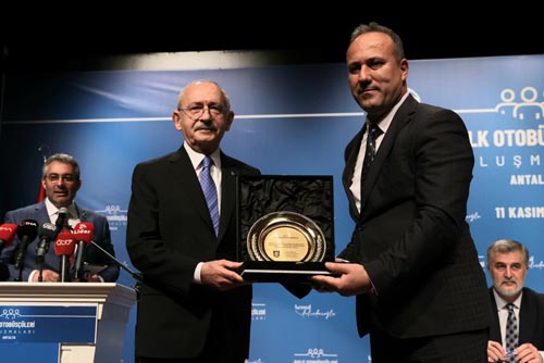 CHP Genel Başkanı Kemal Kılıçdaroğlu, Antalya’da Türkiye genelindeki halk otobüsçüleriyle buluştu. Halk otobüsçüsü esnafının sıkıntılarını dile getirdiği toplantıda Kılıçdaroğlu, toplu ulaşımda her ilde ayrı olan uygulamaları bir kurala bağlamak için bir kanun teklifi hazırlayacaklarını ifade ederek, esnaftan destek istedi. Kılıçdaroğlu, Esnaf Bakanlığı kurulması gerektiğini söyledi. Büyükşehir Belediye Başkanı Muhittin Böcek de “Ortak akılla sorunlara beraber çözüm üreteceğiz. Çünkü biz birlikte güçlüyüz” dedi.