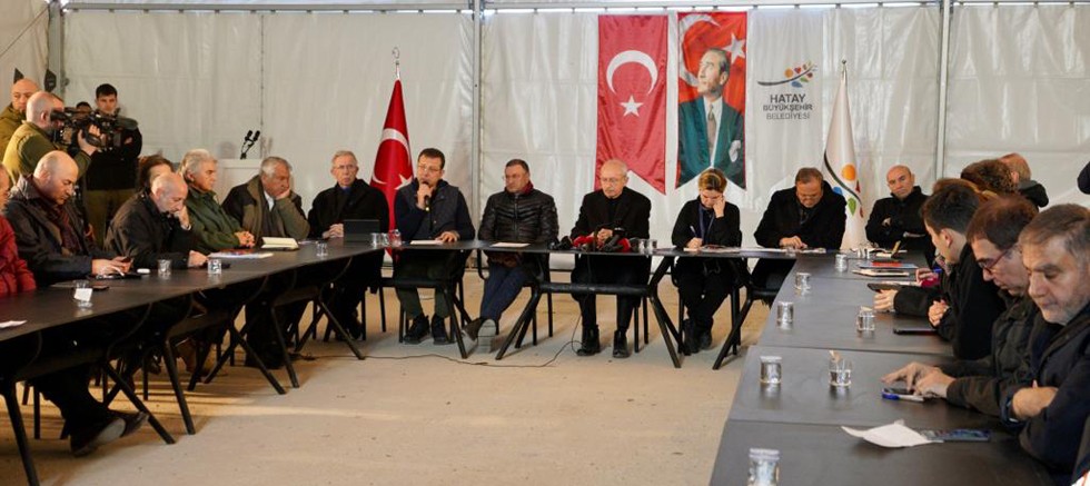 Sözlerine tüm Türkiye’ye baş sağlığı dileyerek başlayan İmamoğlu da “Kol kola, omuz omuza bu sürecin yaralarının sarılması için, öyle zannediyorum ki kısa orta, uzun vadeli bir seferberlik ilanıyla, hep birlikte bu süreci aşmayı başaracağız. Ama elbette gerçeklerle yüzleşebilirsek” ifadelerini kullandı. Büyükşehir belediye başkanları olarak, Savaş’ın koordinatörlüğünde Hatay’a ve depremden etkilenen diğer illere, ilçelere katkı sunmak için yoğun bir çalışma içinde olduklarını vurgulayan İmamoğlu, “Hatay'la ilgili Lütfü Savaş Başkanımızın koordinasyonunda etkin bir çalışmayı hep birlikte başaracağımızdan kimsenin kuşkusu olmasın” dedi. İmamoğlu, AFAD tarafından Hatay ile eşlenen Hatay özelinde yaptıkları katkıları ve çalışmaları şu sözlerle özetledi: