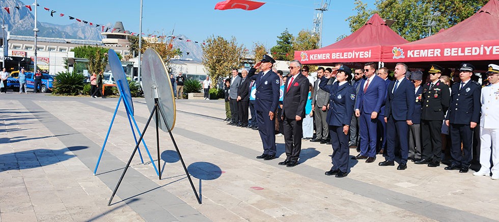 Kemer Cumhuriyet Meydanı’nda düzenlenen törene, Kemer Kaymakamı Ahmet Solmaz, Kemer Belediye Başkanı Necati Topaloğlu, Kemer Cumhuriyet Başsavcı Vekili Serhat Çaylak, Kemer Jandarma Komutanı Ömer Seyhan, Kemer Emniyet Müdür Vekili Yıldırım Ünal, Kemer Sahil Güvenlik Komutanı Soner Tuna, Kemer Belediye Başkan Yardımcıları Emin Gül ile Mehmet Derya Baytekin, Kemer Belediye Meclis Üyeleri Mustafa Bilici, Semih Top, Mehmet Akın, Cansın Efir, Sema Özdemir, Ali Akar, Mustafa Çelik, Hüseyin Sek, Kadriye Şimşek, Kemer Belediyesi Kuzdere Mahalle Sorumlusu Ayhan Yıldırım, Kemer Belediyesi Çamyuva Mahalle Sorumlusu Uğur Keskin, Kemer İlçe Milli Eğitim Müdürü Mehmet Erkan Ergen, muhtarlar, siyasi parti temsilcileri, gaziler ve şehit yakınları, öğretmen ve öğrenciler katıldı.