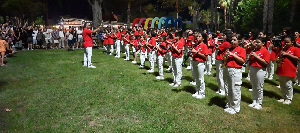 Liman Caddesi’nde ilçede tatil yapan yerli ve yabancı misafirlere mini bir konser veren Cumhuriyet Bandosu, daha sonra Şef Furkan Üstündağ eşliğinde Mustafa Ertuğrul Aker Parkı’na geçti.