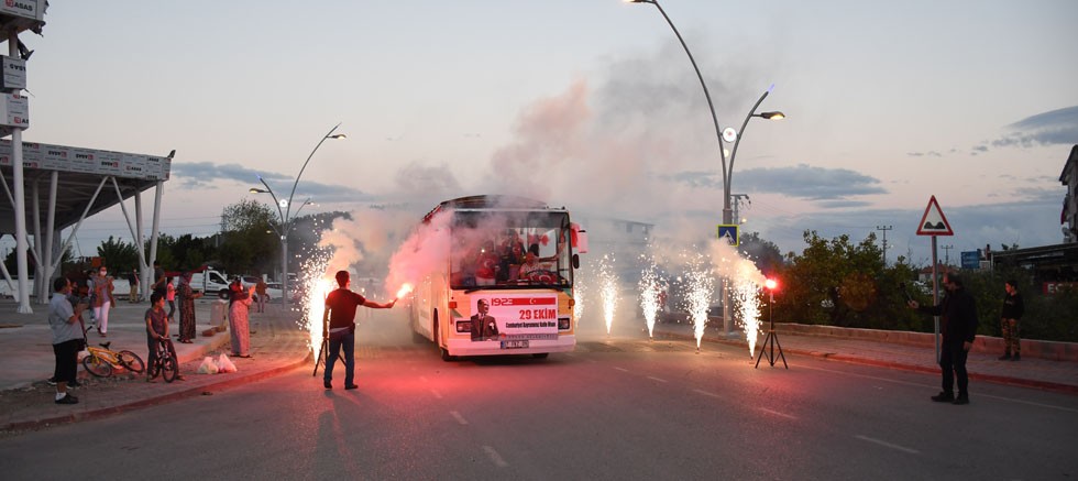 Bando takımı eşliğinde Kemer’in tüm mahallelerinde kortej oluşturan tırın geçişi sırasında vatandaşlar da ellerindeki Türk bayraklarıyla coşkuya ortak oldu.