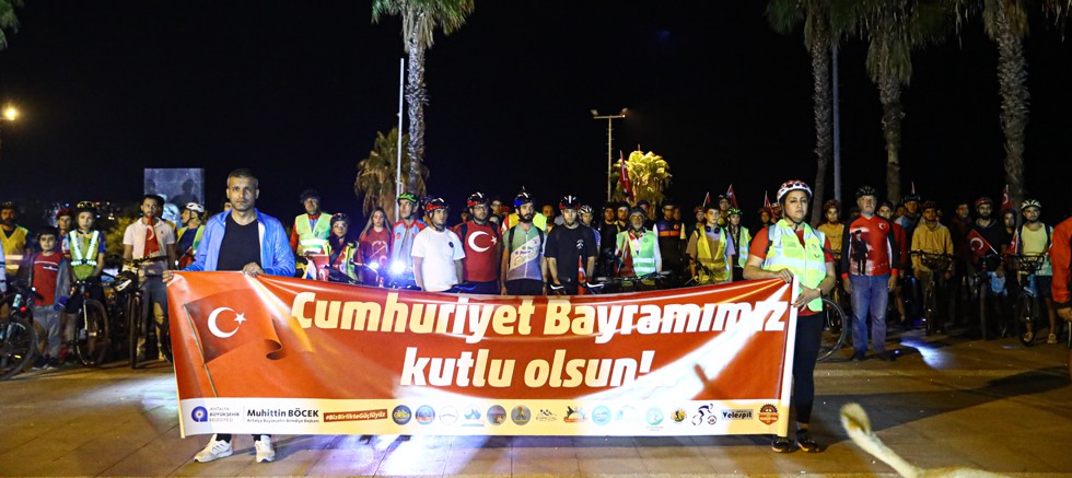 Her yıl farklı etkinliklerle ve yurdun dört bir tarafında coşkuyla kutlanan Cumhuriyet Bayramı bu yılda Antalya’da farklı bisiklet gruplarının katılımıyla ve farkındalık çekmek adına bisiklet turu ile kutlandı. Antalya Büyükşehir Belediyesi Gençlik ve Spor Hizmetleri Dairesi Başkanlığı tarafından düzenlenen, bisiklet turuna; Akübit, Bisiklet Federasyonu İl Temsilciliği , Antalya Kent Konseyi, ABS (Antalya Bisiklet Sevenler Grubu), Antalya Turkuaz Bisiklet, Pab, Konkad, Keyfe Pedal, Eş Pedal, Antbisder, Velespit, Anbifed, Skyrunning, Antalya Yoldaşlar Pedal Grubu, Şafak Bisiklet Grupları katılım sağladı. Konyaaltı Caddesi (Barbaros Çay Bahçesi karşısından) başlayan Cumhuriyet Bayramı Bisiklet Turu Işıklar Caddesi’ne devam ederek Cumhuriyet Meydanı’nda son buldu. Antalyalılar da Cumhuriyet için düzenlenen bisiklet turuna alkışlarıyla destek verdi.