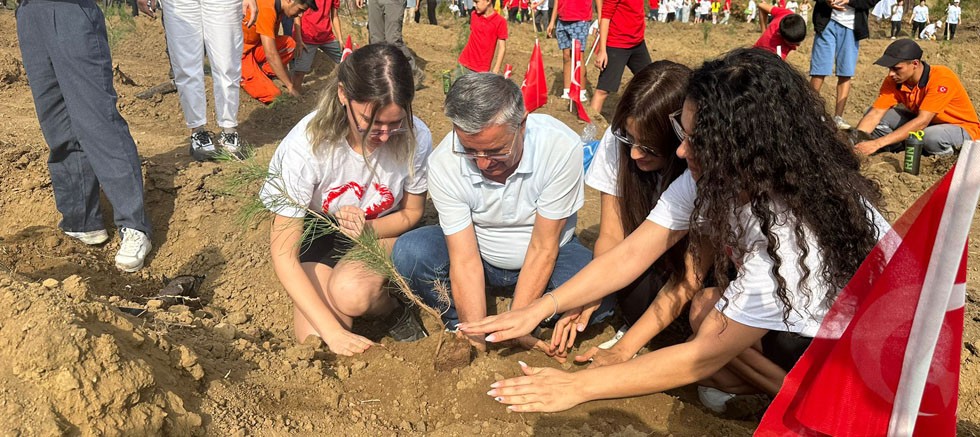 Cumhuriyet'in 100. yıl kutlamaları kapsamında yapılan fidan dikim etkinliğine katılanlar, 1923 fidanı toprakla buluşturdu.