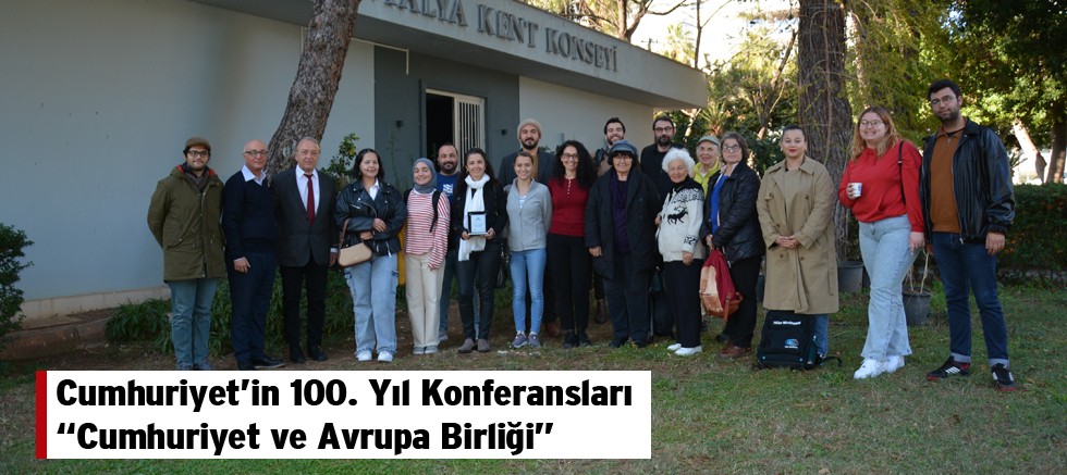 Antalya Kent Konseyi ve Antalya Bilim Üniversitesi Sosyal, Ekonomik ve Politik Araştırmalar Merkezi (SEPAM) tarafından Kent Konseyi Yürütme Kurulu Üyesi Prof. Dr. M. Yusuf Örnek’in moderatörlüğünü yaptığı Cumhuriyetin 100. Yıl Konferansları kapsamında düzenlenen konferansta; Dr. Dicle Korkmaz 25 Aralık 2023 Pazartesi günü Antalya Kent Konseyi’nde “Cumhuriyet ve Avrupa Birliği” başlıklı bir konuşma yaptı.