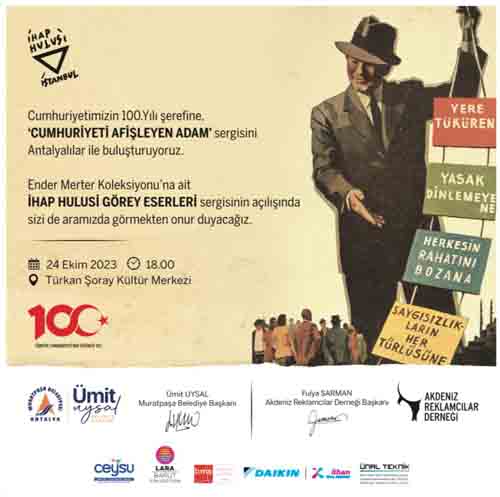 Akdeniz Reklamcılar Derneği (ARD), Cumhuriyet’in 100. Yılında, “Cumhuriyet’i Afişleyen Adam” İhap Hulusi Görey sergisini Muratpaşa Belediyesi ile Antalyalılarla buluşturuyor.