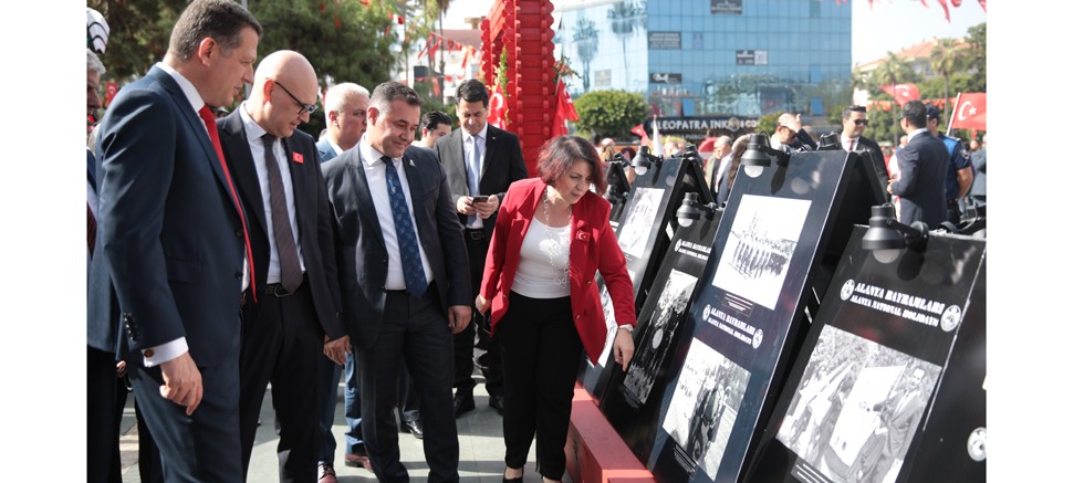 Günümüzden 50-60 yıl öncesinde Alanya’da kutlanan, 23 Nisan Ulusal Egemenlik ve Çocuk Bayramı, 19 Mayıs Atatürk’ü Anma Gençlik ve Spor Bayramı ile 29 Ekim Cumhuriyet Bayramı kutlamaları fotoğraflarından oluşan “Cumhuriyetimizin 100. Yılında Alanya Bayramları” Siyah-Beyaz Fotoğraf Sergisi, Atatürk Anıtı önünde Alanya Kaymakamı Fatih Ürkmezer, Alanya Belediye Başkanı Adem Murat Yücel, Alanya Cumhuriyet Başsavcısı Celal Tekin, protokol üyeleri, kurum müdürleri ve vatandaşların katılımıyla ziyarete açıldı.