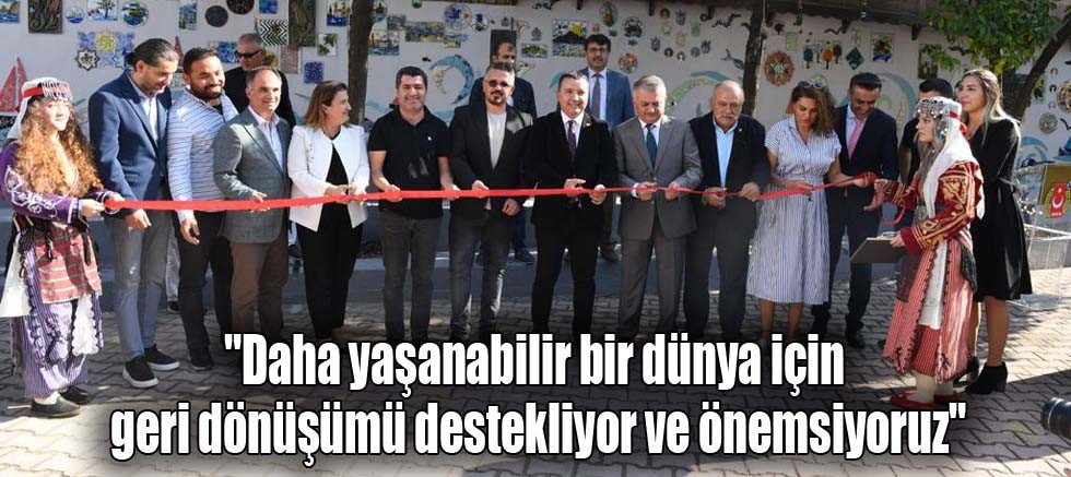 Vali Ersin Yazıcı, Antalya Gazeteciler Cemiyeti (AGC) ve Olgunlaşma Enstitüsü işbirliğinde “Burası Bizim Evimiz, Bizim Duvarımız” sloganıyla 3500 parça atık seramik ve camların sanata dönüştürüldüğü Atık Sanat Duvarı’nın açılışını gerçekleştirdi. Açılışta konuşan Vali Yazıcı; “Şehrimizde atıklardan oluşturduğumuz birçok yapıt var. Daha yaşanabilir bir dünya için geri dönüşümü destekliyor ve önemsiyoruz.” dedi.