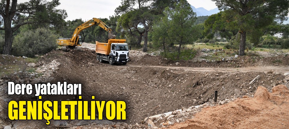 Konyaaltı Belediyesi, kırsal bölgelerde yer alan ve yoğun yağışlarda taşma tehlikesi bulunan derelerde temizlik ve genişletme çalışmaları yapıyor.