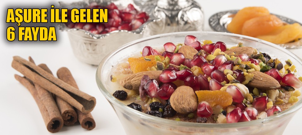Aşure bitkisel kaynaklı yiyeceklerden oluşur. Bu kalp hastalıkları için risk faktörü olan doymuş yağ oranının düşük olması anlamına gelir. İçerdiği posa karaciğerde kolesterol sentezini yavaşlatarak kandaki kolesterol düzeyinin düşmesine yardım eder. Aşureye eklenen kuruyemişler de içerdikleri omega 3 sayesinde kalp damar sağlığını koruyucu etkiye sahiptir. Tüm bu özellikler aşurenin kalp koruyucu bir tatlı olarak öne çıkmasını sağlıyor.