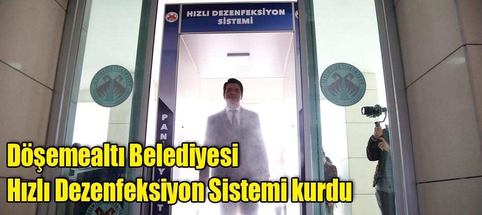 Döşemealtı Belediyesi, küresel salgın haline gelen korona virüs başta olmak üzere tüm salgın hastalıklara karşı aldığı tedbirlere bir yenisini daha ekleyerek hizmet binası girişine "Hızlı Dezenfeksiyon Sistemi" kurdu. Tek seferde 30 mm dezenfeksiyon püskürten cihaz sayesinde ayakkabı ve kıyafetlerde barınmış olabilecek her türlü mikrop ve bakteri birkaç saniye içerisinde yok ediliyor.
