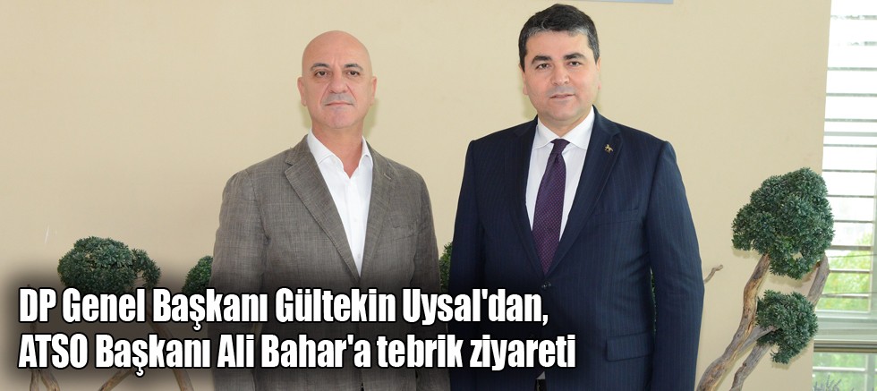 Demokrat Parti Genel Başkanı Gültekin Uysal, Antalya Ticaret ve Sanayi Odası Başkanı Ali Bahar'a tebrik ziyaretinde bulundu. Ordu Milletvekili Cemal Enginyurt, Antalya İl Başkanı Mahmut Çil, İl Başkan Yardımcısı Ali Topal ve partililerle birlikte ATSO'ya gelen Uysal'ı, ATSO Başkanı Ali Bahar, Başkan Yardımcısı Boğaçhan Göksu, Yönetim Kurulu Sayman Üyesi Murat Totoş, Yönetim Kurulu Üyesi Mustafa Yayla karşıladı.