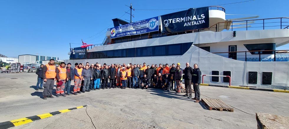 İMEAK DTO Antalya Şubesi ve QTerminals Antalya Liman İşletmesi işbirliğiyle hazırlanan ve depremzedelerin yaralarını sarmak için hazırlanan yardım gemisi yola çıktı.