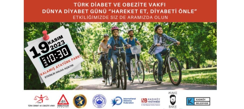 “Riskini Bil, Önlemini Al, Hareket Et, Diyabeti Önle” temalarına dikkat çeken Türk Diabet ve Obezite Vakfı, 19 Kasım 2023 tarihinde Kalamış Atatürk Parkı’nda Bisikletliler Derneği iş birliğinde “Bisikletin Sivil Toplum Gücü ve Sesi” ile hareket ederek, diyabetin yarattığı zorluklara karşı bilinçlenmek ve cesurca hareket etmek için bir araya geliyor.