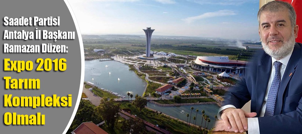 Saadet Partisi Antalya İl Başkanı Ramazan Düzen, Antalya’nın 2016 yılında ev sahipliği yaptığı atıl durunda bulunan Expo 2016 alanını ile ilgili bir basın açıklaması yaptı. Düzen, “Expo 2016 alanı için Türkiye’nin ve dünyanın tarım kompleksi olmasını öneriyoruz” dedi