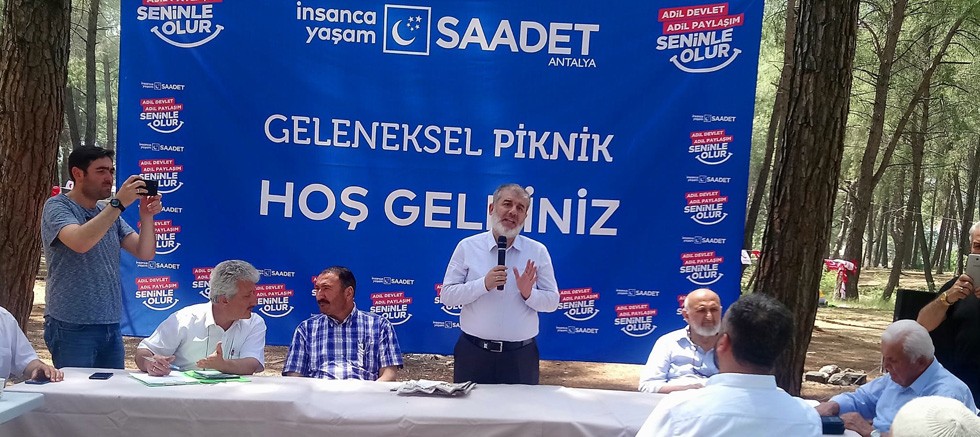 Saadet Partisi Antalya İl teşkilatınca organize edilen geleneksel piknik ve aylık İl Divan Toplantısı Döşemealtı Karaman Piknik Alanı’nda yapıldı. Saadet Partisi İl Başkanı Ramazan Düzen, “Yersiz ve gereksiz gündemlere takılıp kalmayacak, iktidarın gerçek gündemi unutturmak adına ortaya her gün bir yenisini attığı kısır tartışmalarla da asla enerji ve zaman kaybetmeyeceğiz! ”dedi. GİK Üyesi Hasan Güldal ise; “. Saadet Partisi yeni sloganı adil devlet adil düzen seninle olur” cümlelerini kullandı.