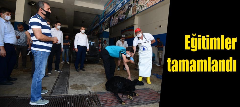 Azize Kahraman Halk Eğitim Merkezi’yle birlikte düzenlenen 20 saatlik kursta, personele dini vecibelere ve hijyen kurallarına uygun kurbanın nasıl kesileceği konusunda hem teorik hem de uygulamalı eğitim verildi. Eğitimlerde, covid-19 pandemisi dolayasıyla dikkat edilmesi gereken noktalar da tek tek anlatıldı.