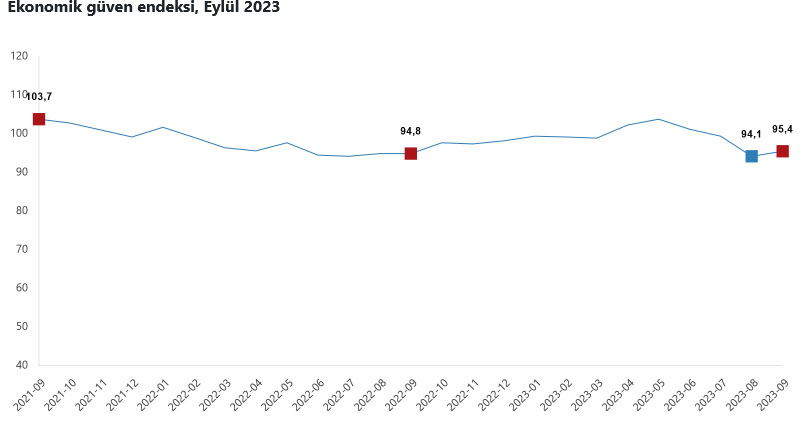 Ekonomik güven endeksi Ağustos ayında 94,1 iken, Eylül ayında %1,3 oranında artarak 95,4 değerini aldı.