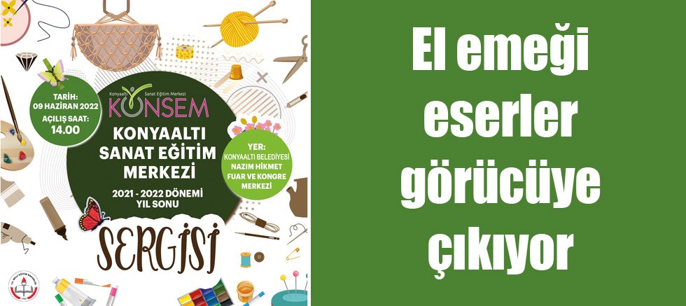 Konyaaltı Belediyesi tarafından hizmete açılan ve açıldığı günden bu yana binlerce kursiyere meslek ve sanat eğitimi veren Konyaaltı Sanat Eğitim Merkezi’nde, yıl sonu sergisi hazırlıkları tamamlandı. KONSEM yıl sonu sergisi ile kursiyerlerin yıl içerisinde hazırladıkları el emeği eserler 9 Haziran Perşembe günü Nazım Hikmet Fuar ve Kongre Merkezi’nde saat 14.00’te görücüye çıkacak.