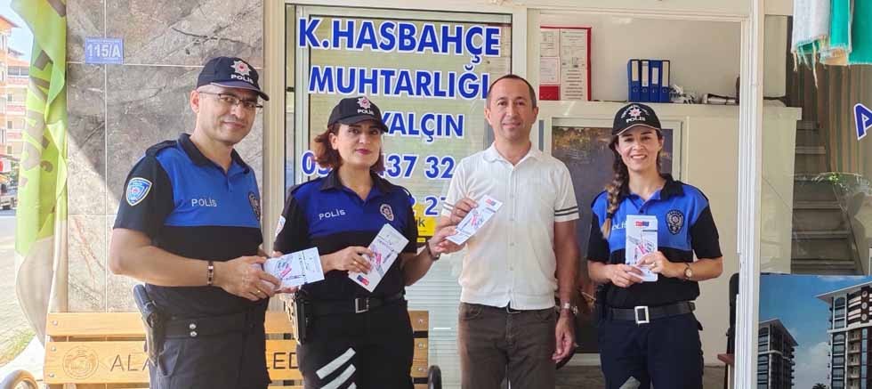"Alanya İlçe Emniyet Müdürlüğümüzce yürütülen “Farkında Ol, Oltaya Gelme” Projesi kapsamında esnaf ve vatandaşlarımızın, “Sanal Ortamda ve İletişim Yoluyla Dolandırıcılık” konularında bilinçlenmeleri amacıyla broşürle bilgilendirme yapılmaktadır.