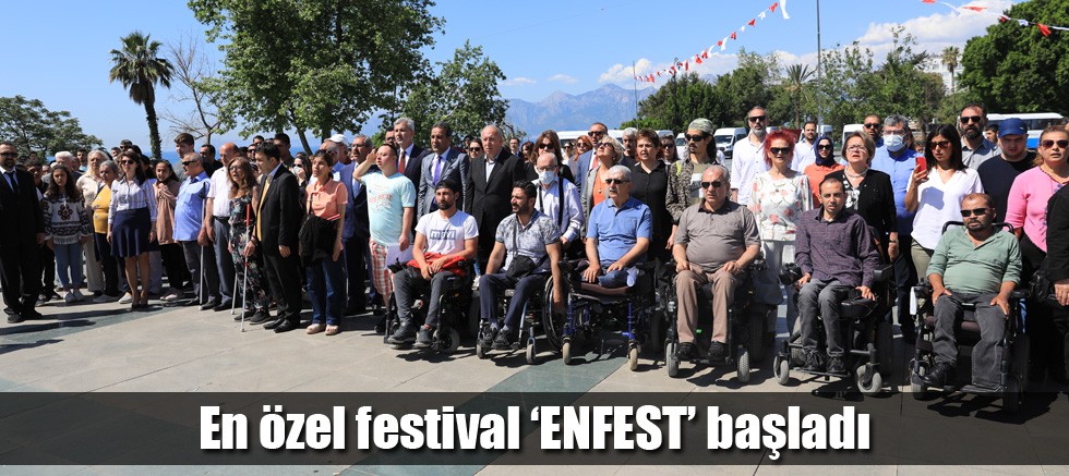 Antalya Büyükşehir Belediyesi Sosyal Hizmetler Dairesi Başkanlığı tarafından her yıl Mayıs ayının 2. haftası farkındalık yaratmak amacıyla düzenlenen Özel Çocuklar Bilim Sanat ve Spor Festivali (ENFEST)" Atatürk Anıtı’na çelenk sunumu ile başladı. Törene Antalya Büyükşehir Belediyesi Sosyal Hizmetler Dairesi Başkanı Güven Ulutekin, Antalya Aile ve Soüsyal Hizmetler İl Müdürü Abdullah Çalışkan, engelli derneklerinin temsilcileri ve engelli vatandaşlar ile aileleri katıldı.