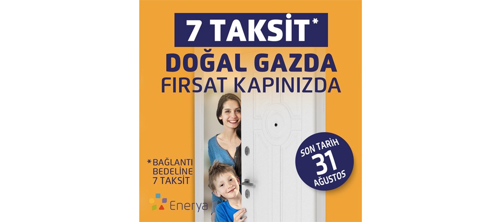 Doğal gaza geçişi kolaylastıran Enerya, faaliyet gösterdiği 10 ilde, abonelik başlangıcında bir defaya mahsus ödenen doğal gaz bağlantı bedeline 7 taksit avantajı sunuyor. Kampanyadan faydalanarak doğal gazın konforunun tadını çıkarmak için son gün 31 Ağustos.
