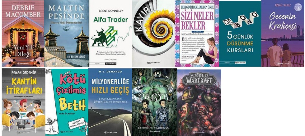 Epsilon, Aralık 2022’de umut dolu bir yeni yıl romanından renkli çizgi romanlara, viski üzerine kapsamlı bir gezi ve anı kitabından psikoloji, ekonomi, anne-bebek sağlığı gibi farklı alanlarda kitaplara geniş bir seçki yayımladı. Epsilon logolu tüm kitaplar raflarda ve internet satış sitelerinde!