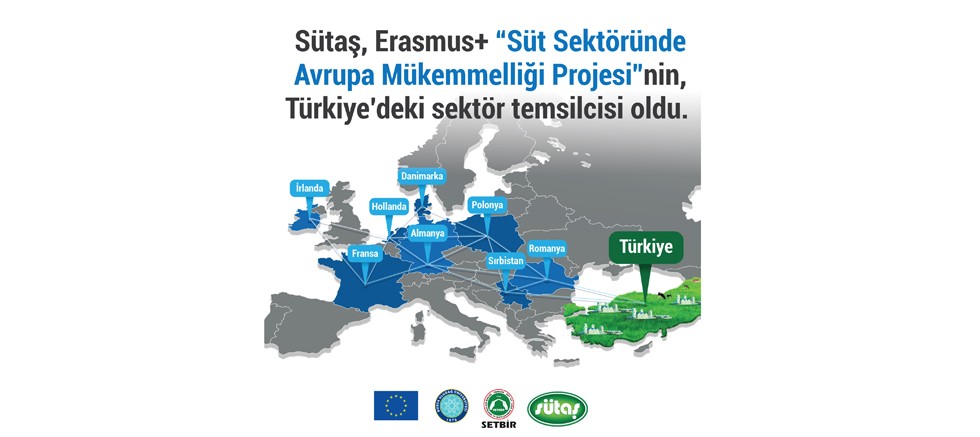 Sütaş, Erasmus+ “Süt ve Süt Ürünleri Sektöründe Avrupa Mükemmelliği Projesi”nin Türkiye’deki sektör temsilcisi oldu. Proje ile Türkiye Süt ve Süt Ürünleri Sektörü Mesleki Mükemmeliyet Merkezi’nin oluşturulması, sektörün ihtiyaç duyduğu Ar-Ge personeli açığının kapatılması, mevcut iş gücünün bilgi ve becerilerinin artırılması hedefleniyor.