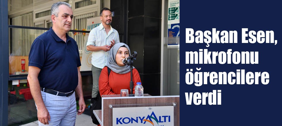 Konyaaltı Belediye Başkanı Semih Esen, belediye bünyesinde bulunan etüt merkezini ziyaret etti. Başkan Esen, yeni eğitim-öğretim yılı öncesinde öğrencilere başarı dilerken, öğrencileri kürsüye davet ederek duygu ve düşüncelerini ifade etmelerini istedi.