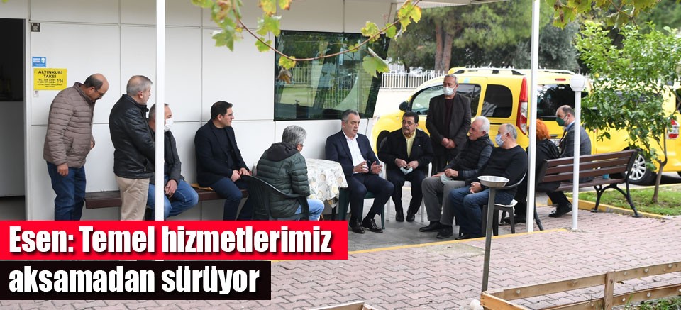 Belediye başkanı olarak hizmet verdiği Konyaaltı ilçesini sokak sokak gezerek incelemelerde bulunan Başkan Esen, tespit ettikleri eksikleri hızlıca çözüme kavuşturacaklarını belirtti. Beraberindeki heyet ile Altınkum Mahallesi'nde incelemeler yapan Esen, “Yurttaşlarımızın günlük hayatını kolaylaştırmak için temel hizmetlerimizi aksatmadan sürdürüyoruz. Pazar yerimiz başta olmak üzere, sokaklarımız ve sosyal yaşam alanlarımızda tespit ettiğimiz eksikleri ivedilikle halledeceğiz” dedi.