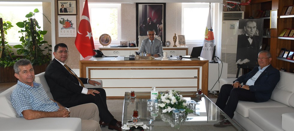 Antalya Esnaf ve Sanatkarlar Odaları Birliği (AESOB) Başkanı Adlıhan Dere, Kemer Belediye Başkanı Necati Topaloğlu ile bir araya geldi.Başkan Topaloğlu’na nezaket ziyareti gerçekleştiren Dere, 1 Hazirandan itibaren başlayan yeni normalleşme kararları kapsamında esnafın kepenk açma kapama saatleri konusunda Başkan Topaloğlu ile fikir alışverişinde bulundu. Dere’ye ziyareti sırasında, Kemer Esnaf ve Sanatkarlar Odası Başkanı Bolat Ünsal ve Kemer Ulaştırma Hizmetleri Esnaf ve Sanatkarlar Odası Başkanı Mustafa Tıraş’da eşlik etti.