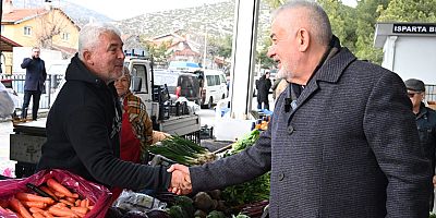 Isparta Belediye Başkanı ve AK Parti Belediye Başkan Adayı Şükrü Başdeğirmen, Mehmet Tönge Kapalı Pazaryerinde esnaf ve ..
